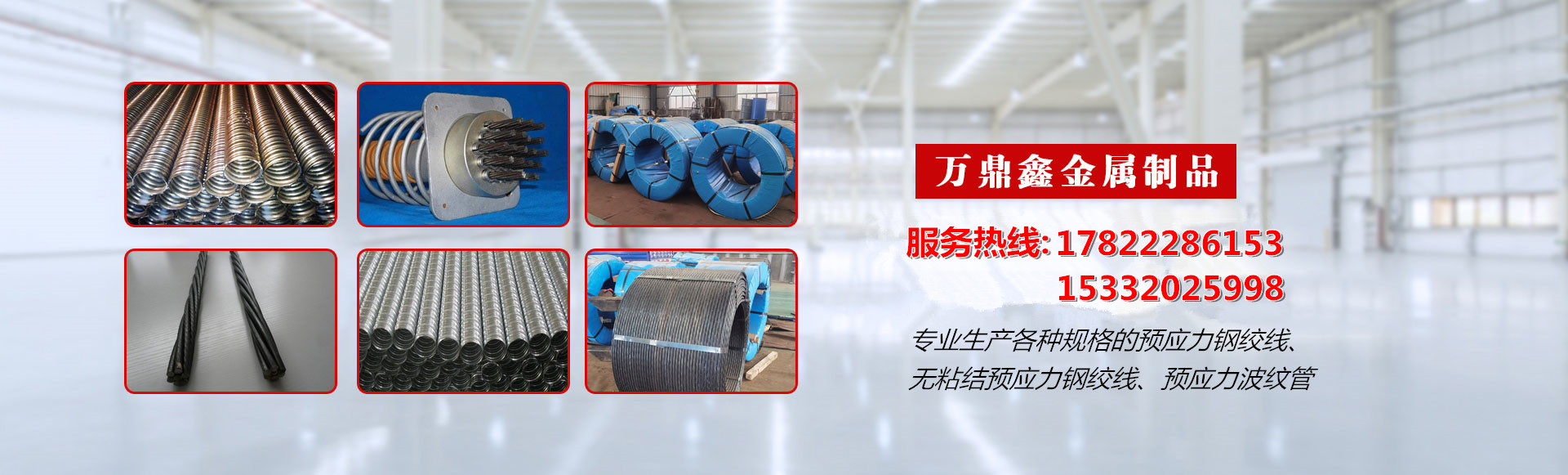過硬的產品質量和良好的售后服務贏得了國內外客戶的一致好評。 公司地理位置優越作為天津市預應力鋼絞線生產企業之一, 天津市靜海縣萬鼎鑫金屬制品有限公司以“科學管理、技術為先、服務至上”為宗旨;竭誠歡迎國內外用戶蒞臨公司指導、洽談業務。